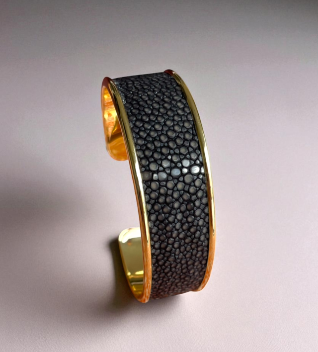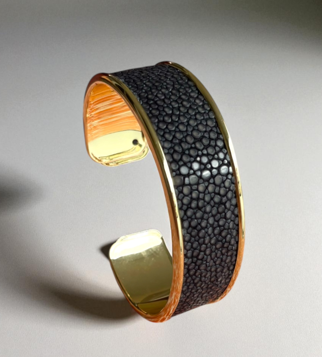 Matières: Acier Inoxydable et cuir de Galuchat Upcyclé