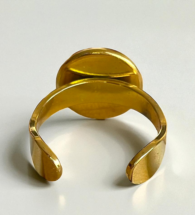 Bague réglable en acier inoxydable, ornée d'un disque rond en galuchat